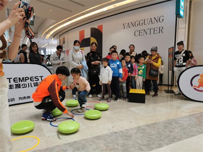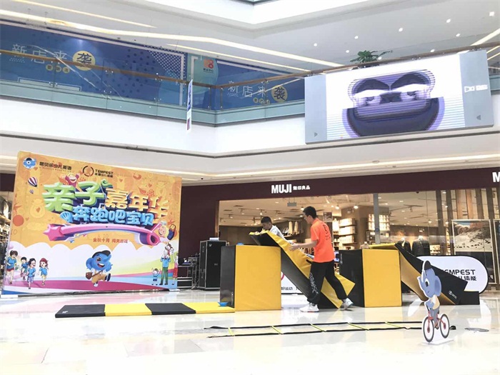 為豐富場內(nèi)活動(dòng),帶動(dòng)整體氛圍,吸引客流同時(shí)帶動(dòng)兒童業(yè)態(tài)整體積極性,提振經(jīng)營信心,成都陽光新業(yè)中心結(jié)合場內(nèi)商戶“易貝樂少兒英語”資源,2020年10月11日下午在場內(nèi)中庭開展10月嘉年華闖關(guān)活動(dòng)。